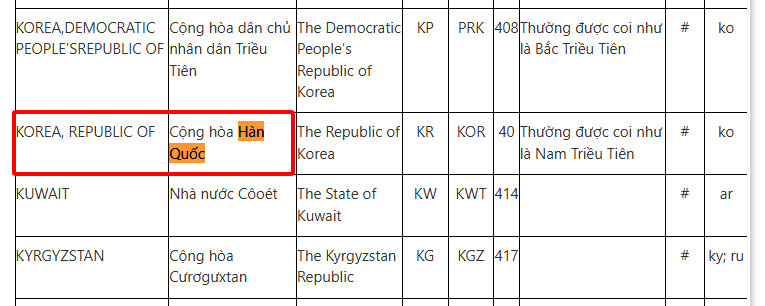 “MADE IN KOREA, REPUBLIC OF” hoặc “MADE IN THE REPUBLIC OF KOREA”
