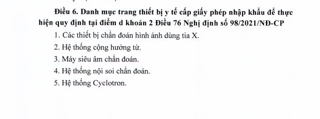 - Danh mục TBYT cấp GPNK (quy định điểm d, khoản 2, điều 76 _ Nghị định 98/2021/NĐ-CP)
