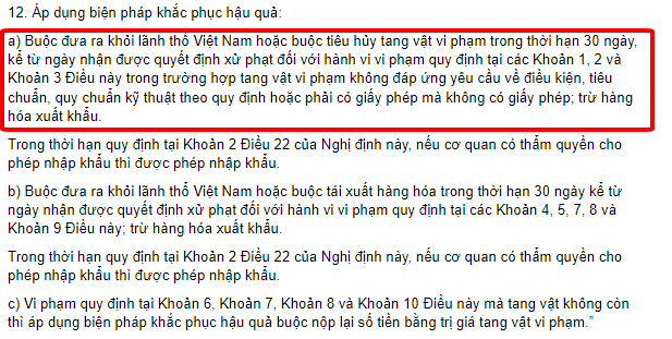 Biện pháp khắc phụ hậu quả quy định thêm tại Điều 7 Công văn 763/TCHQ-PC và khoản 12, Điều 14 Nghị định 45/2016/NĐ_CP yêu cầu hàng không có tem nhãn sẽ phải xuất trả hàng hóa trong thời hạn 30 ngày.