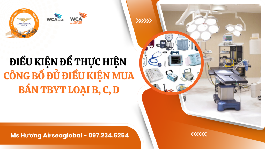 - Điều kiện 2: Thực hiện thủ tục Công bố đủ điều kiện mua bán trang thiết bị y tế loại B, C, D tại Sở Y tế nơi doanh nghiệp đặt trụ sở.